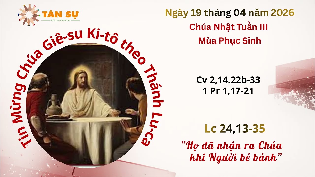 Tin Mừng | 19.04.2026 | Lm. Vinh Sơn Phạm Trung Thành, DCCT 19.04.2026Admin MediaLeave a Comment on Tin Mừng | 19.04.2026 | Lm. Vinh Sơn Phạm Trung Thành, DCCT Đọc thêm...